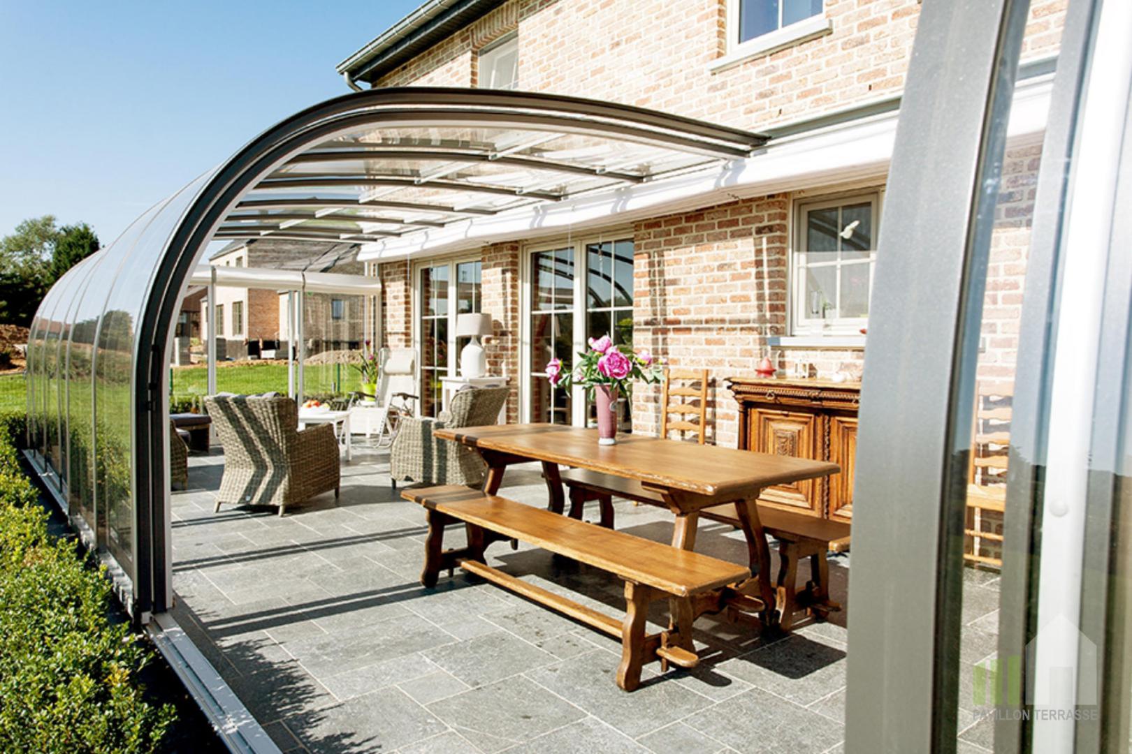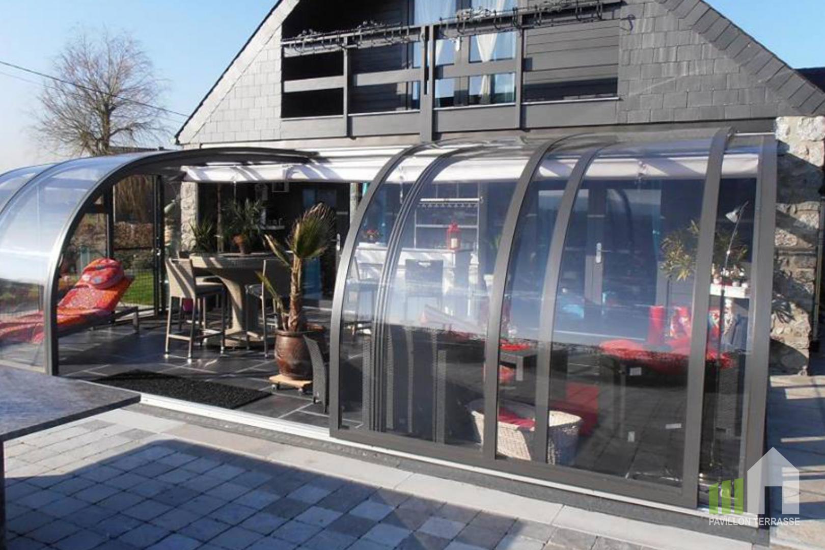 Une construction télescopique et spéciale qui va s'adapter aux contour de votre maison. Nous sommes fabricant et en mesure détuder votre projet aménagement de votre terrasse.